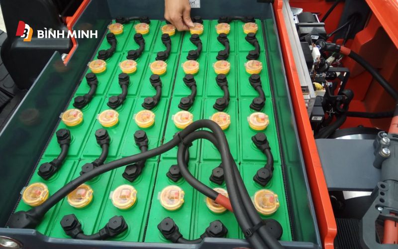Kiểm tra ắc quy và đầu cực: Bình ắc quy cung cấp nguồn điện cho xe nâng. Để duy trì tuổi thọ của ắc quy, hãy kiểm tra các đầu cực thường xuyên và vệ sinh nếu thấy có hiện tượng rỉ sét.